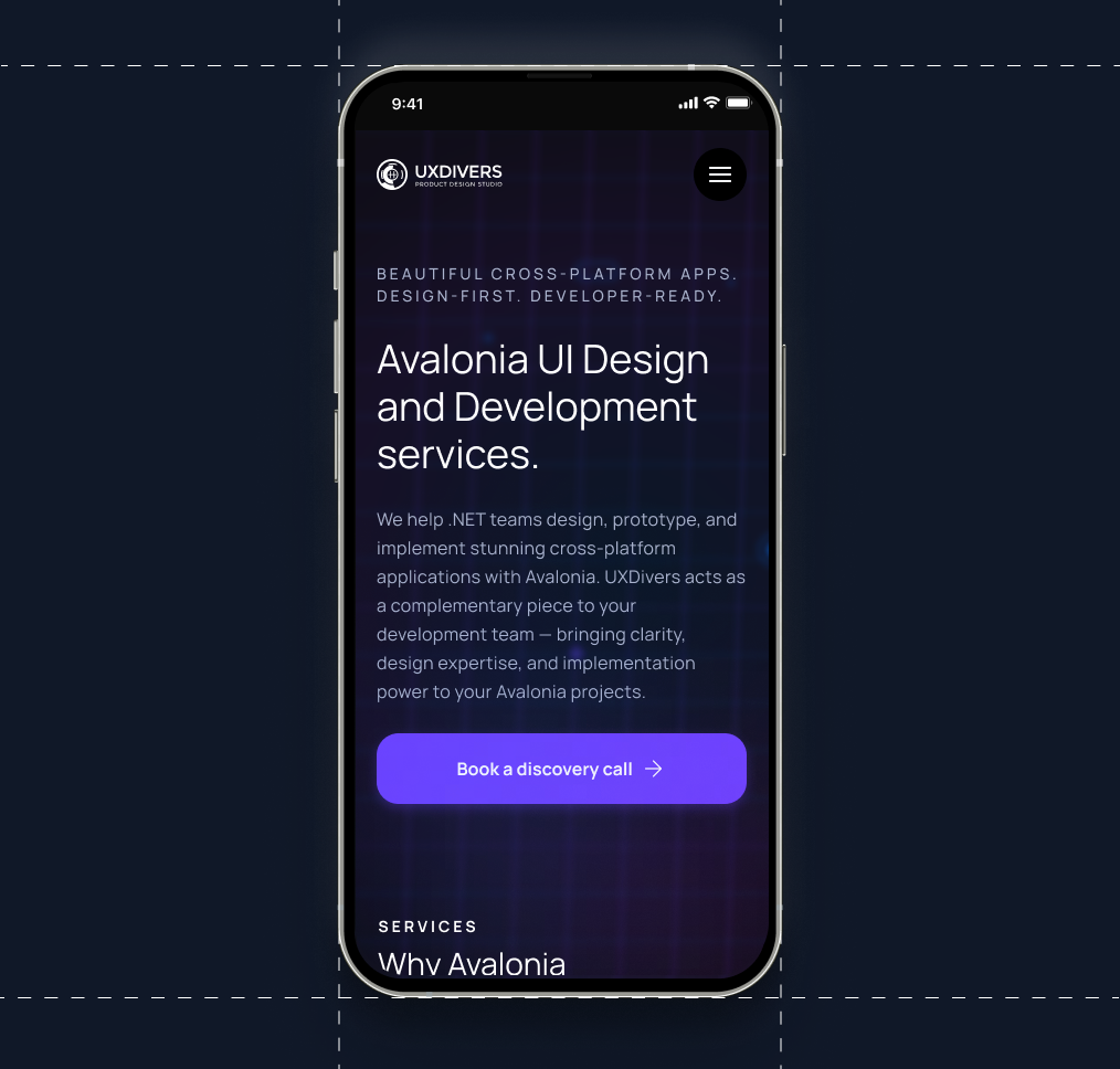 Redesign of the Avalonia landing experience for UXDivers, clarifying the framework’s capabilities and helping technical teams evaluate it against alternatives like WPF and MAUI.